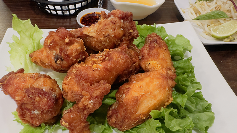 2 Fried chicken thighs with fish sauce and pickled vegetables
